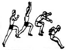 elan cu 3-5 pasi, desprindere in pas saltat, urmat de pas sarit si aterizare in groapa;