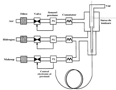 Gaz-cromatografele moderne sunt echipate cu aparate de control electronic al presiunii gazelor si cu aparate de masurare a debitului controlate electronic care mentine debitul la nivelul dorit[6].